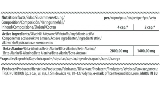 Beta-Alanine 700 от Trec Nutrition бета-аланин наивысшего качества, помогающий организму в процессе интенсивных и долговременных физических нагрузок.